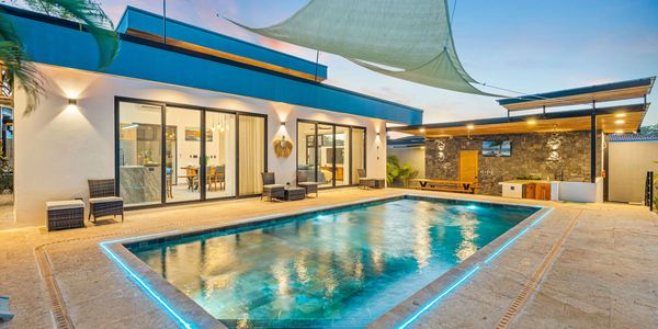 But that's not all! Villa Guacamaya Azul boasts a large pool which includes a kid’s pool and a deep area, a shaded BBQ area / Yoga area, a pergola with outdoor seating, 2 outdoor showers, a shaded parking, and a beautiful garden. And if you're a surfer, you'll love that Playa Grande is one of the best surfing spots in the area.